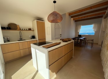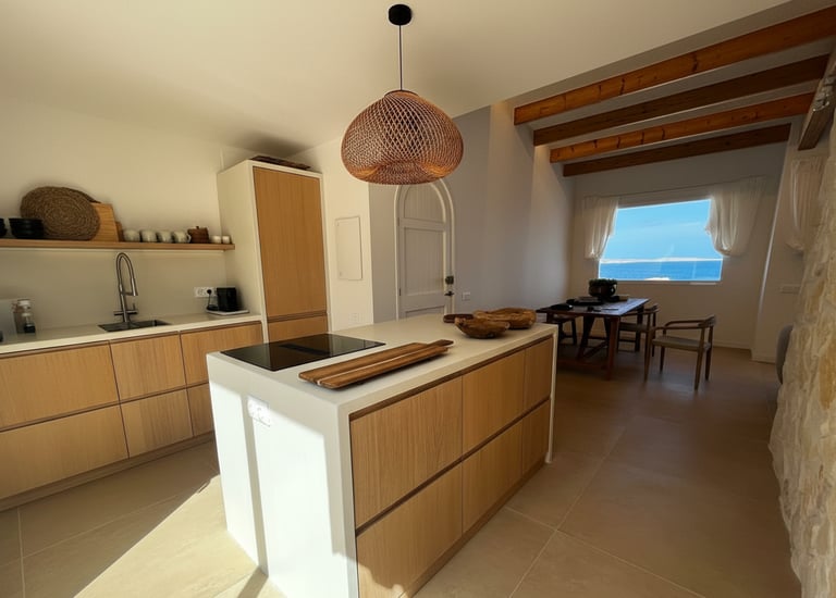 Reformamos esta casa con vistas espectaculares, acabados en microcemento y abundante luz natural, creando un espacio moderno y acogedor.