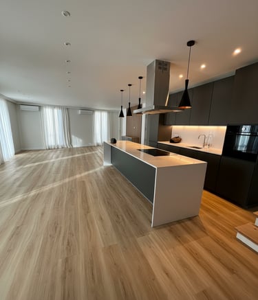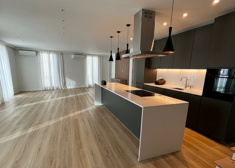 Renovación completa de suelos, cocina y baños con estilo actual.