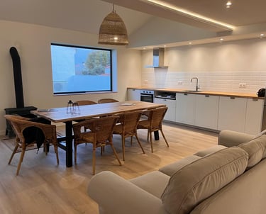 El resultado es un loft funcional y abierto, con un comedor conectado a la cocina, un baño moderno y una terraza acogedora que aporta amplitud y luz al conjunto.